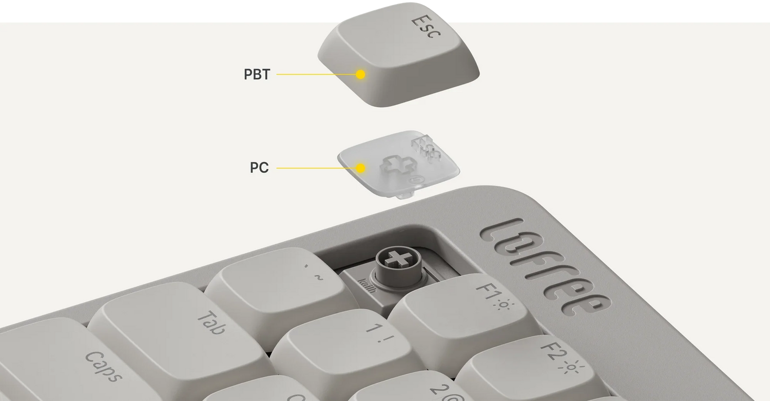 The keycaps are designed to provide more comfortable finger contact. If you want a durable, textured typing experience and keycap characters that stay sharp, PBT keycaps are the way to go. In order to get the backlight to the front, we’ve used a two-tone design on keycaps. The letter parts are made from PC for backlights, to be enjoyed with a dark environment, while the rest remains PBT to ensure the best typing experience.